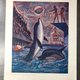 Playing with dolphins. Immerse yourself in a world where reality merges with imagination in this mesmerizing color lithograph by renowned Ukrainian artist Volodymyr Novikovsky. Created in 1972, "Dolphinarium" showcases the artist's unique vision and mastery of etching.