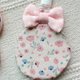 禮盒內容物:蕾絲拼接花兜+平安符袋+蝴蝶結奶嘴夾
