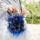 將歐根紗布料撕裂,編織成充滿空氣感的柔軟質地。撕裂後的柔軟布料產生挺度。透過一針一線紮實編織,創造出蓬鬆的立體感。