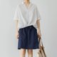 法式復古 少女打結寬鬆棉質短袖襯衫