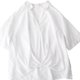 法式復古少女白色打結寬鬆棉質短袖襯衫