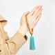 比賽千鈞一髮奪標, 面試前磨礪出自信, 創業夢想如願起飛, 在人生每個重要的關鍵時刻, 引領・陪伴我們邁向成功。 拿出勇氣勝利在握! -------- 流蘇顏色:湖水藍×琥珀橙 材料:木珠/杉木,流蘇/人造絲 全長:約24cm