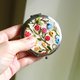 這是一款直徑7公分的隨身鏡,細膩而美麗的印度刺繡,為其增添了別緻的風采。