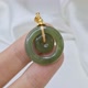 ►平安扣外圓內圓,外圓寓意天地,內圓象徵心境平和,同心圓也寓心心相印,冰油綠色澤沉穩中帶清透,無論搭配日常服飾或正式場合皆相宜。