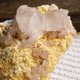 --這黃褐色一顆顆的礦是白雲石,白雲石中的鎂被鐵替代,故成黃褐色的形態,含鐵多的白雲石又叫鐵白雲石(Ankerite)