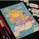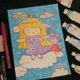 女孩踏上如棉花柔軟的雲朵,與兔兔一起乘著雲朵去旅行。飛機鳥也徜徉其中。