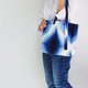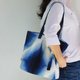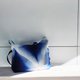 設計師將原本的幾何夾染融入漸層染色,讓原本理性感的幾何圖案更加有了溫柔的手染風格。大面積重複效果下,像似有著鏡面效果,看得人目眩神迷。
