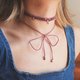 本系列靈感來自於蕾絲花紋,設計上於頸繩位置編織了仿蕾絲的花紋,配合了水滴形鍍金珠,尾繩可綁成蝴蝶結,可放在前頸或後頸,隨個人喜好配戴。