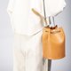 看似小巧卻有著出奇的大容量,運用皮革肌理的自然支撐,放入書本、水瓶也能維持外觀挺立,透過移動繩結能自在轉換斜背、肩背和手提的形式,水桶造型自帶可愛無敵的魅力。