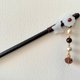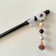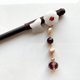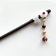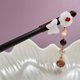 天然淡水粉色珍珠攜紅色石榴石和白玉蝴蝶花朵形成一步一搖的環配叮當之勢,紗織小姐將其連綴到打磨光亮的黑檀木髮簪之上,打造出優美柔韌的古典國風之美。髮簪長度約18cm,就這樣在你的云鬢髮髻上環配叮當,是配漢服和旗袍的絕配頭飾,讓你在舉手投足之間流露出美好的古典氣質。
