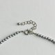 此款為日本製貝殼珍珠項鍊,以貝殼為原材,經過多層原創珍珠塗料堆疊上色而成。珍珠色澤為原創灰色,講求細緻質感與滑順光澤。尺寸設計為直徑約 3mm 至 7mm 的漸層效果,全長約 38cm,為標準的公主式項鍊長度,略短一些。墜飾末端附有調節鍊,可增長約 5cm。