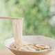 清澈的湯底透出富含層次的濃醇香氣, 細緻的麵條挾著湯底引流入口, 滑溜鮮香, 齒頰生香