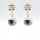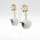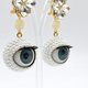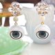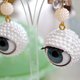 **TIMBEE LO 以白色樹脂珍珠綴滿整顆活動開合的眼球上, 再製成非常華麗的耳環款式, 眼球直徑約22mm (加上珍珠厚度約24mm) , 每顆眼球用上超過200顆白色樹脂珍珠, 搭配洋裝有著無與倫比的華麗感。**