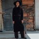 胡椒鹽黑色 點子紗長款毛衣開衫 氣質高領毛衣洋裝 - 女毛衣/針織衫 - 羊毛 黑色