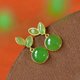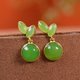 和田玉純銀碧玉耳墜 寓意吉祥如意 雕工精緻 上身簡單大方 - 耳環/耳夾/耳骨夾 - 水晶