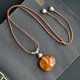【意安】天然琥珀蜜蠟金絞蜜帶原皮平安扣古典文藝項鏈