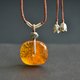 【意安】天然琥珀蜜蠟金絞蜜帶原皮平安扣古典文藝項鏈 - 項鍊 - 寶石 黃色