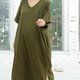 V領連袖寬版洋裝 / 嫘縈 橄欖綠