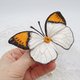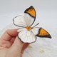 The right side of the butterfly is embroidered with mouline thread. All the wings keep their shape well thanks to the wire frame. It allows the butterfly to take any of its natural forms.