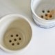 - 簡單圓潤的造型,帶有金黃點綴的米白,使用白陶土手工製作,底部孔洞與盆足的設計增加空氣流動與排水性,適合當作各式植物的家。