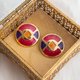 - 美國1980年代古董,三色幾何琺瑯,大圓耳針