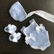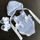 Blue and white clothing set for baby boy. Hand made romper, hat and shoes with ribbon. Baby shower, or take home outfit for baby boy. oIf you need another color, please contact me.