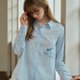 - Keira 藍色/黃色翻領翻領刺繡襯衫
