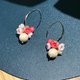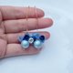 藍色粉紅花團啞光珠 手工軟陶耳環 | 耳夾