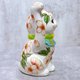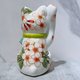 招財貓白瓷光滑如玉,身上點綴著盛放的櫻花與飄落的葉片,彷彿春風吹拂般自然優雅