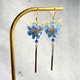 花朵下方搖曳著深邃藍色的施華洛世奇水晶,以及俐落的金色長棍墜飾。