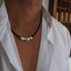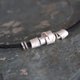 This necklace was created from a series of handmade silver beads, all a bit different in shape, slightly irregularly cut, textured on surface with various techniques and rolled into the final shape. They are all applied on a round-profile dark brown leather string that closes with a beautiful handmade silver hook.