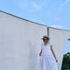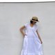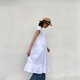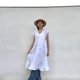 夏末之戀/白色織紋緹花純棉不對襯蛋糕裙下擺V領小包袖洋裝100%棉