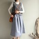 凱旋大道/純棉單寧含毛料A字後開衩牛仔裙/鬆緊腰中長裙