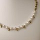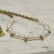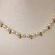 項鍊中央選用天然淡水米形珍珠,潔白飽滿,如同凝結的月光。每顆珍珠下方,都點綴著一顆細膩的金色錐形裝飾,它們整齊排列,彷彿一排華麗的金色流蘇(金穗),為珍珠鍊增添了豐富的律動感和精緻的細節。