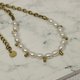 項鍊兩側連接的是古銅金色的粗獷鍊條,大鍊節的設計與中央細膩的珍珠串形成鮮明對比,既平衡了珍珠的柔美,也注入了隨性又復古的時尚氣場。