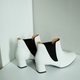 兩步驟快速穿脫,靴口的收放細節。在造型中,無論是哪種身形的妳,穿上她馬上擁有絕佳的完美身形,因為在造型曲度與線條中,加上搭配4.5公分的後跟,有藏著讓WL費盡心思的秘密。在穿著性中,兩側計算過的寬度與鬆緊織帶,快速穿脫。穿上後,能立即感受到柔適的觸感,內藏了前後完美比例A+乳膠。踏上她,猶如冠冕,呈現妳的完美身形。