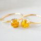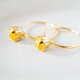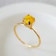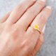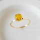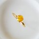 黄色いローダンセの花びらを小さな粒の中に樹脂で閉じ込めた指輪。