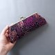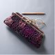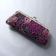 がま口ペン・眼鏡ケース No.2 煙モチーフ ビーズ刺繍 両面刺繍 日本製 手作り ギフト ピンク×黒 ウール製 一点物