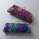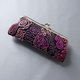 がま口ペン・眼鏡ケース No.2 煙モチーフ ビーズ刺繍 両面刺繍 日本製 手作り ギフト ピンク×黒 ウール製 一点物 - 眼鏡盒/眼鏡布 - 羊毛 粉紅色