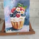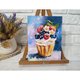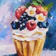 A miniature painting with a delicious cupcake is painted with oil paints on hardboard in a 20/15 cm format. A painting with a sweet dessert will decorate your kitchen and can be an excellent gift for yourself and your loved ones. A small picture of food is painted using the impasto technique with voluminous, textured strokes of paint. Frame not included.