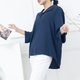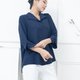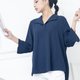 襯衫領前短後長七分袖上衣 / 深藍色 透氣舒適,夏秋皆宜