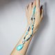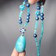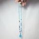 天河石主墜色彩勻淨、閃現絲綢光(星光、珍珠光),無礦缺斑點,鍊身以同具珍珠光之藍珍珠、琺瑯設計,3種唯美冰藍色調相互掩映,鍊身表現錯落有致、律動優美,展現女性氣質柔美、華麗浪漫之情。