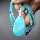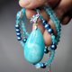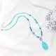 嚴選天河石(幸運之石),精工磨製飽滿水滴飾、鑽面珠飾,相佐藍珍珠、琺瑯設計。
