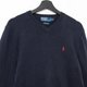 •商品敘述-Back to Green-復古毛料毛衣 深藍polo 針織 v-23/sweater