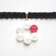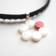 以濃郁的藍色為背景,點綴花朵和珍珠,搭配閃粉與白色線條,設計出優雅的吊墜。俐落的方形線條能讓頸部線條看起來更為修長。深沉的藏青色是秋冬季節的絕佳搭配單品。