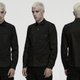 - 日常時尚的賽博龐克襯衫。採用彈力斜紋梭織和肌理印花針織料製成。不同面料拼接設計打造高辨識度與層次感。肩部及口袋處立體“X”型撞釘演繹賽博龐克風。門襟處質感手縫扣加持造型,呼應整體。