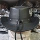 Unique Silver Metal Pirate Skull with sword & chains on Leather Hat Band.