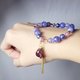 鍊身佐寶石之王-紅寶石,主飾富貴紅碧璽墜與古典金流蘇,丹泉石色彩、尺寸和諧搭配、富韻律感,整體紅、紫、藍色調浪漫時尚,演繹智慧、富貴、華美之氣息。
