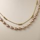 * 副鍊(短): 純粹的金色圓珠鍊,作為疊搭層,增加了閃耀的細節和視覺焦點。