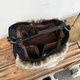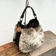 - こちらの巾着のミニバッグ。ミニとはいえ財布やポーチなどお出かけには十分なサイズです。 ファーは和歌山で作られた柔らか質感が手触りの良いフェイクファーです。ぜひ一度触ってみてもらいたいです!! ※柄の入りかたは一点ごとに異なります。